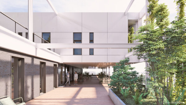 Dernière pièce du Campus Roullier, notre projet s’inscrit dans la même gamme chromatique que les autres projets afin de conférer une grande homogénéité à l’ensemble du Campus.