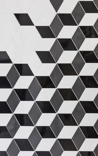 La construction, d’une écriture architecturale très sobre, reprend la verticalité des ouvertures de la maison Novello. Le RDC s’installe à plus d’1,00 m du trottoir afin de respecter la côte PPRI et avoir une hauteur sous dalle de 3,50 m, ce qui accentue l’effet d’élancement du dessin de la façade rue. Des briques de parement blanches relèvent discrètement l’élévation de la rue Coulabin et l’attique. Inspirée de la construction voisine, une corniche blanche souligne simplement les différents volumes du projet. L’élévation Est est, quant à elle, composée de balcons filants sur toute la largeur du bâtiment. Au niveau 01, une large terrasse couvre en partie le stationnement et une jardinière plantée d’arbustes le masque davantage. A ce dessin très mesuré des façades, des gardes-corps en verre sérigraphié de briques, une serrurerie métallique reprenant ce même motif et une écriture singulière des ouvertures viennent enrichir le projet. Pour les élévations aveugles (façade Nord du grand volume et Est du petit), un dessin en trompe-l’oeil reprend l’écriture des ouvertures sur rue. Une treille reprenant le dessin des ouvrants du bow-window anime le soubassement aveugle de la façade sud du grand volume.